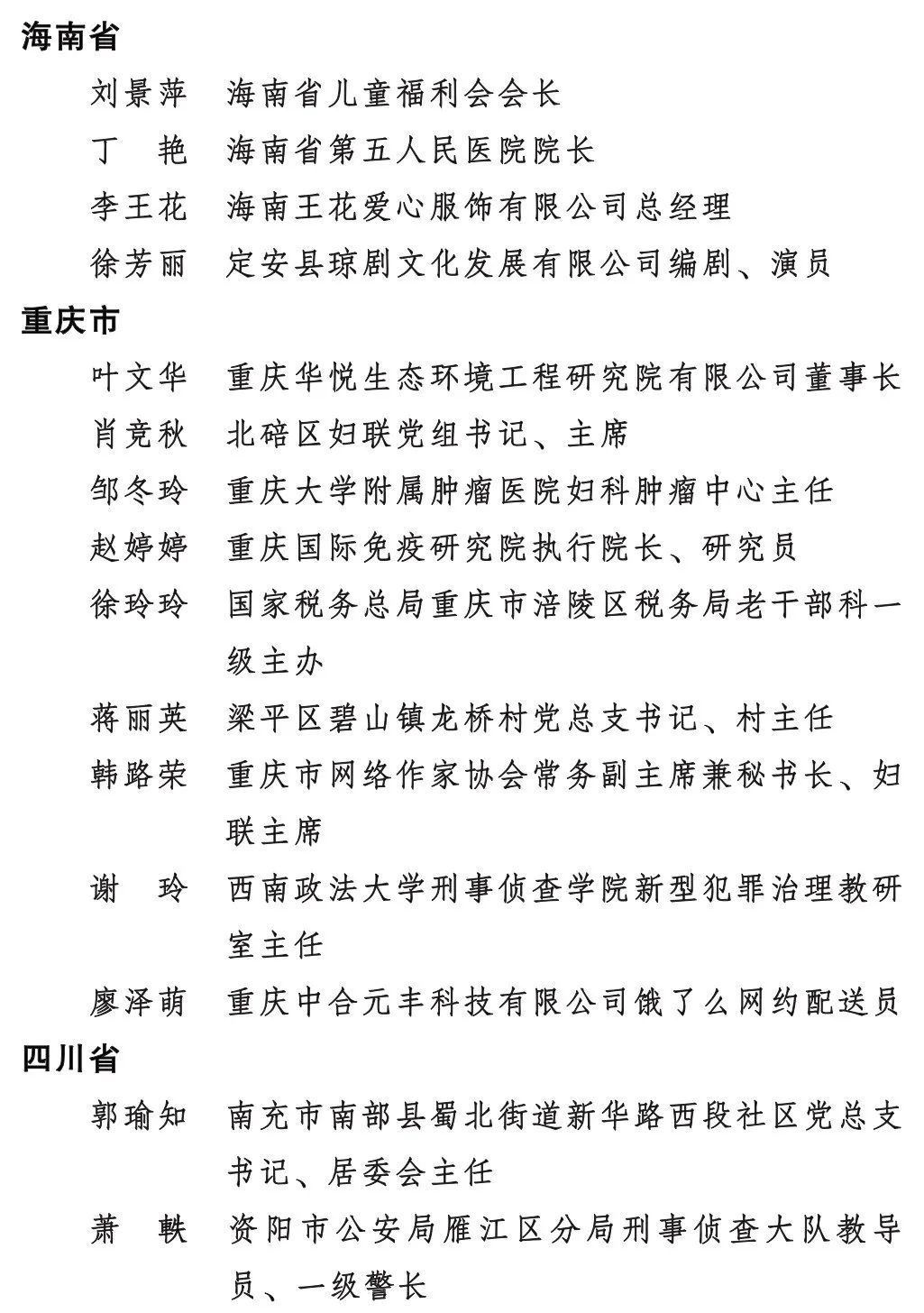 全國(guó)三八紅旗手名單