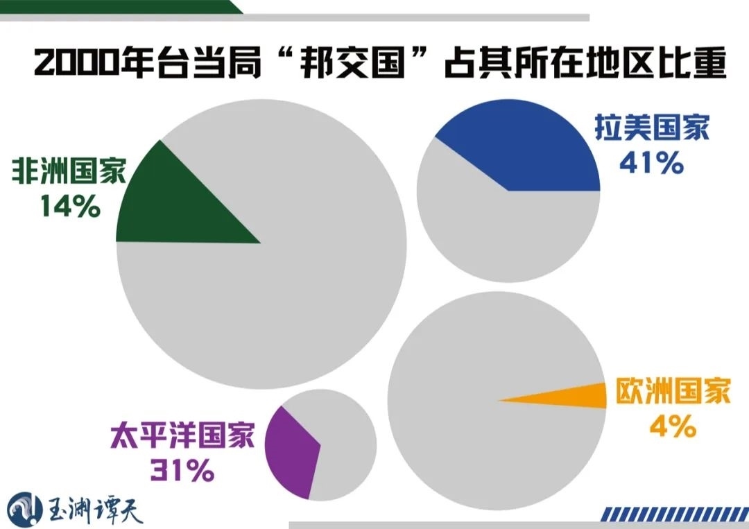 在2000年,臺(tái)灣當(dāng)局的“邦交國(guó)”僅覆蓋拉美、非洲、太平洋和歐洲四個(gè)區(qū)域。