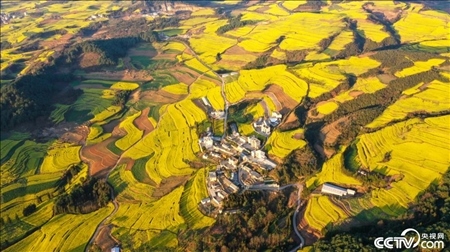 2024年3月5日,云南曲靖,羅平縣馬街鎮(zhèn)鐵廠村委會(huì)野貓洞村,油菜花開春意濃,山間原野滿目金黃。