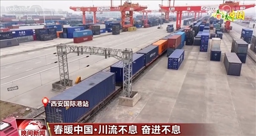 忙碌起來(lái)的不只是港口,西安國(guó)際港站汽笛聲聲、班列轟鳴,龍門(mén)吊正加緊作業(yè)。這輛滿載光伏設(shè)備和新能源汽車(chē)等貨物的中歐班列,預(yù)計(jì)9天后將抵達(dá)目的地——烏茲別克斯坦塔什干。在這里,平均每1小時(shí)40分鐘就有一列中歐班列出發(fā)或到達(dá)?!耙粠б宦贰苯ㄔO(shè)讓西部成為開(kāi)放前沿,開(kāi)放是一種理念、一條路,更是一種胸襟。?