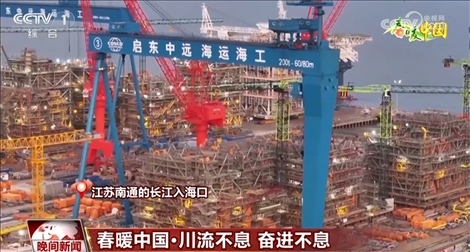 在江蘇南通的長(zhǎng)江入海口,一個(gè)個(gè)造型各異的“巨無(wú)霸”讓人震撼。眼前的這艘海上浮式生產(chǎn)儲(chǔ)油輪已經(jīng)進(jìn)入最后的模塊吊裝施工階段。與此同時(shí),自升式風(fēng)電安裝船、全球最大集裝箱船等重點(diǎn)高端產(chǎn)品不斷取得突破。長(zhǎng)江入??谑墙K點(diǎn)也是起點(diǎn),所謂突破就是將終點(diǎn)當(dāng)成起點(diǎn),不停出發(fā)。