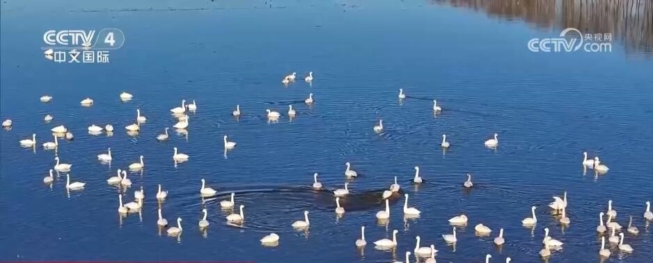 大批國家二級重點(diǎn)保護(hù)野生動物大天鵝在遷徙途中飛臨河北唐山市曹妃甸區(qū),它們在濕地、農(nóng)田等水域覓食、嬉戲,悠閑地享受著這份春日美好。曹妃甸是東亞至澳大利西亞候鳥遷徙路線重要的停歇地,每年春秋兩季到此逗留的鳥類達(dá)數(shù)百萬只,為曹妃甸增添了自然生態(tài)之美。