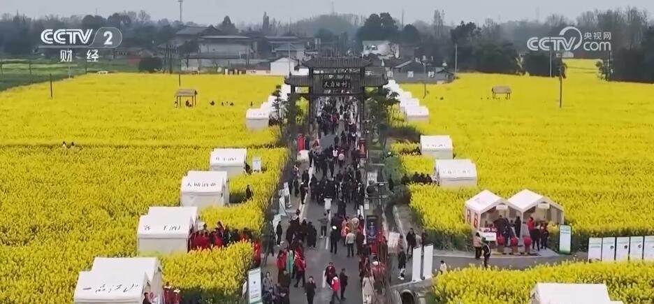 除了“花田火鍋”,在以油菜花田為背景的鄉(xiāng)村道路上,各類裝滿當(dāng)?shù)靥厣r(nóng)產(chǎn)品的攤位依次擺開(kāi)。游客們迎著花香趕大集,帶走春日特有的伴手禮。