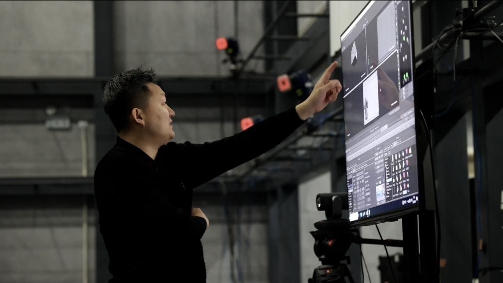 “這是動(dòng)作數(shù)字孿生,利用光學(xué)動(dòng)捕技術(shù),棚內(nèi)多個(gè)專(zhuān)業(yè)攝像頭捕捉演員身上的特定標(biāo)記,以毫秒級(jí)的速率計(jì)算出角色的運(yùn)動(dòng)軌跡,然后將數(shù)據(jù)傳送到電腦上,實(shí)現(xiàn)虛擬人物的動(dòng)作。”國(guó)家動(dòng)漫園公共技術(shù)服務(wù)平臺(tái)動(dòng)捕棚的技術(shù)顧問(wèn)崔盛輯向記者介紹道。