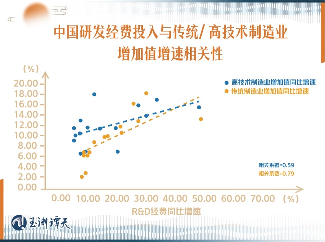 在中國,對于傳統(tǒng)產(chǎn)業(yè)而言,研發(fā)經(jīng)費(fèi)投入對增長的貢獻(xiàn),反而更容易顯現(xiàn)。