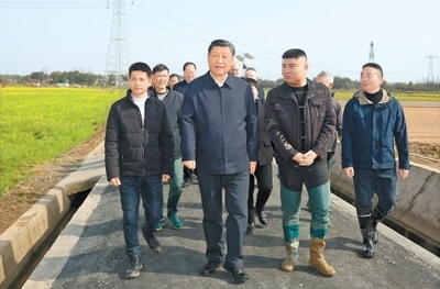 湖南是全國13個糧食主產(chǎn)省之一,水稻播種面積、總產(chǎn)量均居全國第一。當天下午,習近平來到常德市鼎城區(qū)謝家鋪鎮(zhèn)港中坪村,走進當?shù)丶Z食生產(chǎn)萬畝綜合示范片區(qū),察看秧苗培育和春耕備耕進展,聽取高質(zhì)量推進農(nóng)業(yè)現(xiàn)代化情況介紹,并同種糧大戶、農(nóng)技人員、基層干部一筆一筆算投入產(chǎn)出賬。習近平強調(diào),我國有14億多人口,糧食安全必須靠我們自己保證,中國人的飯碗應(yīng)該主要裝中國糧。要建設(shè)好高標準農(nóng)田,推行適度規(guī)模經(jīng)營,加強政策支持和示范引領(lǐng),加大良種、良機、良法推廣力度,在精耕細作上下功夫,進一步把糧食單產(chǎn)和品質(zhì)提上去,讓種糧也能夠致富,進而吸引更多農(nóng)戶參與發(fā)展現(xiàn)代化大農(nóng)業(yè),真正把中國特色農(nóng)業(yè)現(xiàn)代化之路走穩(wěn)走扎實。