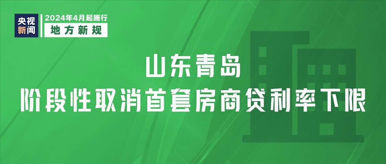 4月1日起,山東青島階段性取消首套住房商業(yè)性個(gè)人住房貸款利率下限。本次調(diào)整適用于青島新發(fā)放首套住房商業(yè)性個(gè)人住房貸款,二套住房商業(yè)性個(gè)人住房貸款利率政策下限仍按現(xiàn)行規(guī)定執(zhí)行。