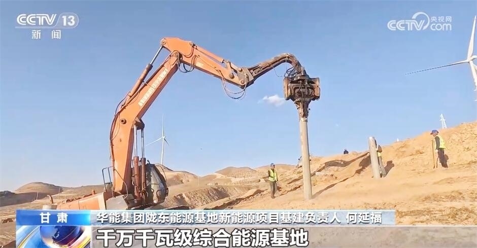 在我國(guó)首個(gè)千萬(wàn)千瓦級(jí)多能互補(bǔ)綜合能源基地——華能隴東能源基地,施工現(xiàn)場(chǎng)一片繁忙景象。目前,基地已建成投產(chǎn)100萬(wàn)千瓦容量,在建500萬(wàn)千瓦容量。