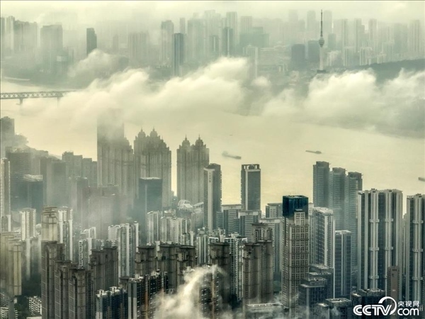 2024年4月1日,武漢出現(xiàn)平流霧景觀,高樓建筑云霧中若隱若現(xiàn),如夢如幻。
