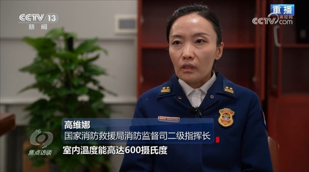 國家消防救援局消防監(jiān)督司二級指揮長高維娜:“30秒鐘就能達到燃燒狀態(tài),3分鐘火焰中心部位的溫度能達到1200攝氏度。如果是在室內(nèi),室內(nèi)溫度能高達600攝氏度,會產(chǎn)生大量有毒煙氣。目前,我們國家沒有專門針對電動自行車火災(zāi)撲救的滅火藥劑?!?/p>
