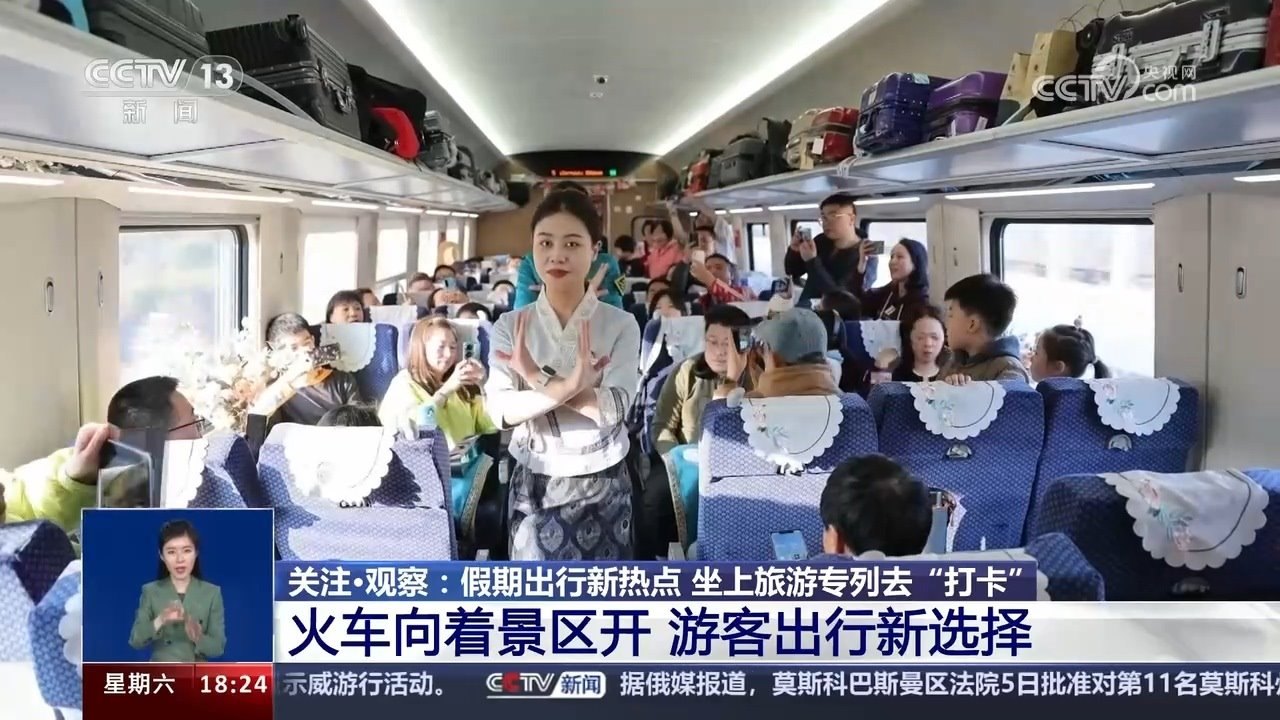 央視網(wǎng)消息:清明春花放,踏青好時節(jié)。坐著火車去旅行,縱跨千山,橫飛萬水,用速度與激情串聯(lián)美景。今年清明假期第一天也就是4月4日,全國鐵路發(fā)送旅客1853.6萬人次,創(chuàng)今年以來單日旅客發(fā)送量新高。以網(wǎng)紅城市、網(wǎng)紅景區(qū)為目的地的客流增幅明顯,各地增開的臨客列車也瞄準(zhǔn)了游客“打卡地”。坐上旅游專列去旅行,可以給移步換景的美好出游心愿帶來多少種可能呢?進(jìn)入今天的關(guān)注觀察。