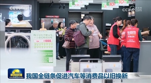 央視網消息(新聞聯(lián)播):記者從商務部了解到,近日,14部門聯(lián)合發(fā)布《推動消費品以舊換新行動方案》,部署組織在全國范圍內開展汽車、家電、家裝廚衛(wèi)等消費品以舊換新。