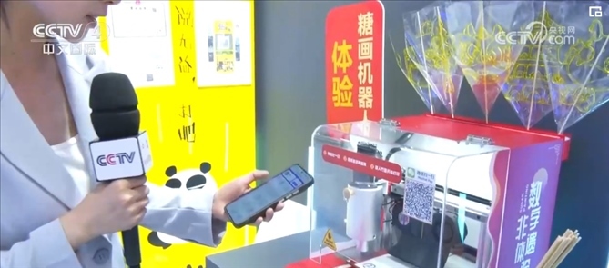 借助消博會這個平臺,不僅有很多國外產(chǎn)品走進(jìn)來,也有更多國貨走出去。3D打印機(jī)能打印食物,還能做糖畫,短短幾十秒,一個精致的龍形糖畫就做好了。把中國傳統(tǒng)美食和現(xiàn)代科技相結(jié)合,這樣的創(chuàng)新形式讓人眼前一亮。工作人員介紹,現(xiàn)在這款機(jī)器已經(jīng)遠(yuǎn)銷到美國。科技賦予國貨新活力,讓非遺走得更遠(yuǎn)。