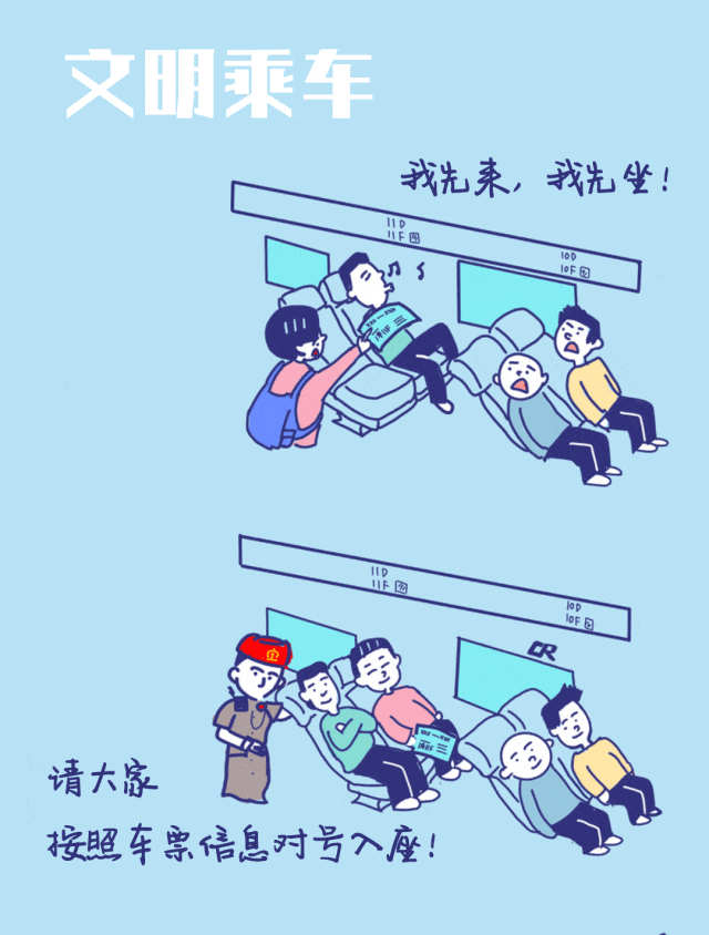 請(qǐng)按照車票信息對(duì)號(hào)入座 不搶座、不霸座