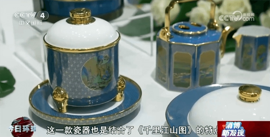 江西省景德鎮(zhèn)市商務局工作人員章少聰介紹稱:“這一幅畫是北宋王希孟先生創(chuàng)作的,叫作《千里江山圖》。這一款瓷器也是結(jié)合了《千里江山圖》的特點,把中國傳統(tǒng)畫中的山水、花鳥都完全在瓷器上面展現(xiàn)出來?!?/p>