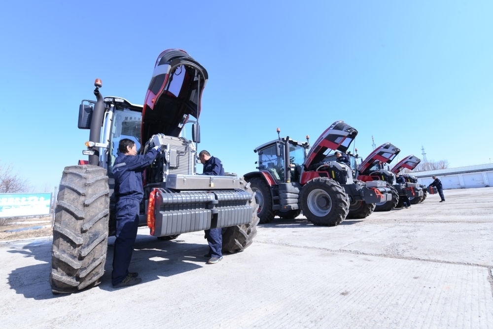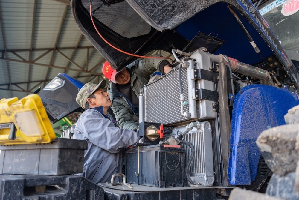 2024年3月22日,在北大荒集團建設農場有限公司,農機手對新引進的拖拉機進行調試。新華社記者 王松 攝