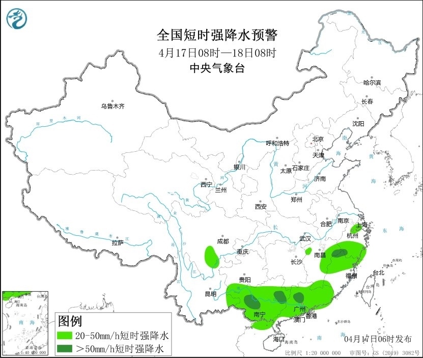 央視網(wǎng)消息:中央氣象臺(tái)4月17日06時(shí)繼續(xù)發(fā)布強(qiáng)對(duì)流天氣黃色預(yù)警和暴雨藍(lán)色預(yù)警: