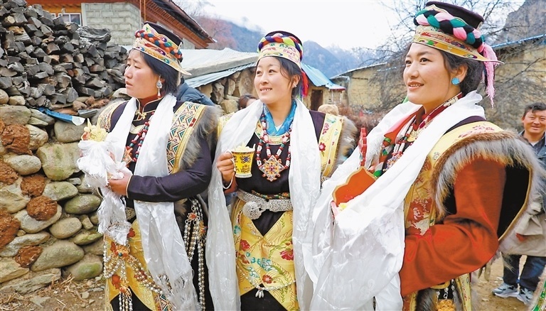 下尼屋的田壟上,35歲的扎西旺姆正在和相熟的村民一起干農(nóng)活,她是從波密縣八蓋鄉(xiāng)嫁到這里的,已經(jīng)在尼屋生活了7年。“這里和八蓋一樣,都以農(nóng)耕為主,氣候也差不多,人也很熱情,我和鄰居們經(jīng)常一起挖蟲草、采松茸、干農(nóng)活,感覺(jué)很幸福!”