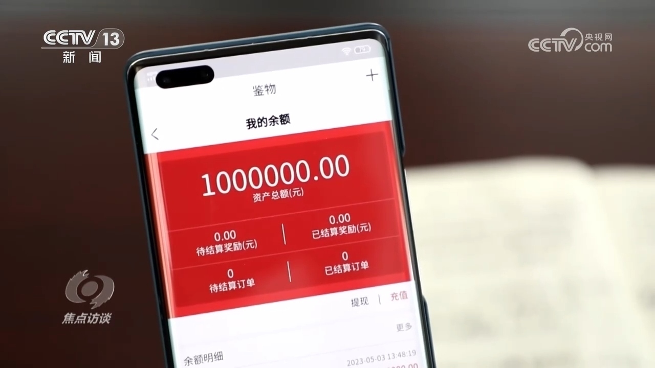 嚴(yán)女士:“我看到定金已經(jīng)打到我的‘鑒物’APP賬戶里面了,客服說是不能提現(xiàn)的,要交兩萬(wàn)塊錢的保證金,就是說我現(xiàn)在打了兩萬(wàn)塊錢,一家就成了富人,102萬(wàn)就可以從里面提取出來了?!?/p>