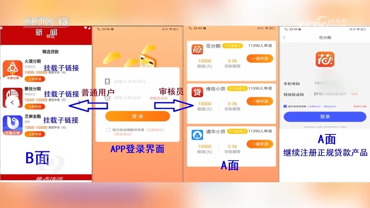 安徽省蕪湖市公安局經(jīng)開區(qū)分局偵查打擊部警務(wù)技術(shù)二級(jí)主管高陽(yáng):“提供審核的都是正規(guī)的貸款產(chǎn)品,點(diǎn)擊以后一步一步看起來都很正規(guī),這樣審核員就會(huì)通過,覺得這個(gè)APP是正常的,可以在官方應(yīng)用商城上架。但是普通用戶登錄以后,就會(huì)下載新的APP,新的APP都是詐騙APP?!?/p>