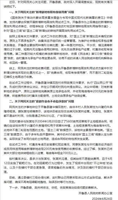 ·新增耕地收取有償使用費(fèi)?農(nóng)耕作業(yè)會(huì)不會(huì)貽誤農(nóng)時(shí)??jī)?nèi)蒙古開魯縣回應(yīng)。