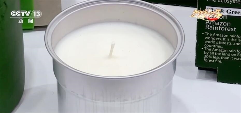 像這樣有著綠色環(huán)保展品的展位,在展館里并不少見。在家居裝飾品展區(qū),記者了解到,隨著可持續(xù)和環(huán)境友好理念深入人心,許多參展商在產(chǎn)品的用料方面也更加考究,比如這家香氛制造企業(yè),把產(chǎn)品的原料從不可再生的石蠟換成了植物性材料乳木果蠟,力求在產(chǎn)品的全生命周期都能做到綠色低碳。