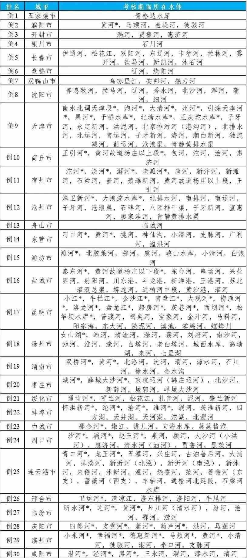 地級(jí)及以上城市國(guó)家地表水考核斷面排名