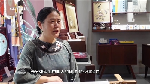 盧建英:“當(dāng)時我在繡一幅《桃花太平鳥圖》,習(xí)近平總書記走到了我的繃架前。他說你好,很親切,很和藹,看得非常仔細(xì)。他說中華文化的傳承力有多強,通過這個蘇繡可以看出來,像這樣的功夫充分體現(xiàn)出中國人的韌性、耐心和定力,這是中華民族精神的一部分,能得到總書記的認(rèn)可,真的是倍感榮耀。”