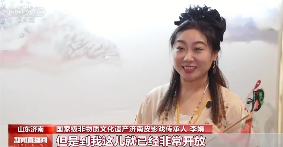 國家級非物質(zhì)文化遺產(chǎn)濟南皮影戲傳承人李娟稱:“濟南皮影世世代代傳承,傳到我這兒是五代了,過去叫傳男不傳女,但是到我這兒就已經(jīng)非常開放,女孩也可以學皮影。我就想實現(xiàn)我的夢想,讓更多的女孩子有機會接觸到皮影,在濟南這么美麗的百花洲,我們就在這里成立了一個皮影女團,有很多年輕的女孩通過學習皮影,甚至看演出的時候她只是一個觀眾,她發(fā)現(xiàn)皮影非常有意思,就非常希望能夠加入到我們團隊里來,幫著我們一起去傳承發(fā)展皮影?!?/p>