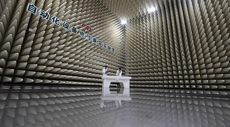 2023年7月7日,在南瑞集團有限公司自動化設(shè)備電磁兼容實驗室,科研人員在進行輻射發(fā)射實驗準(zhǔn)備工作。