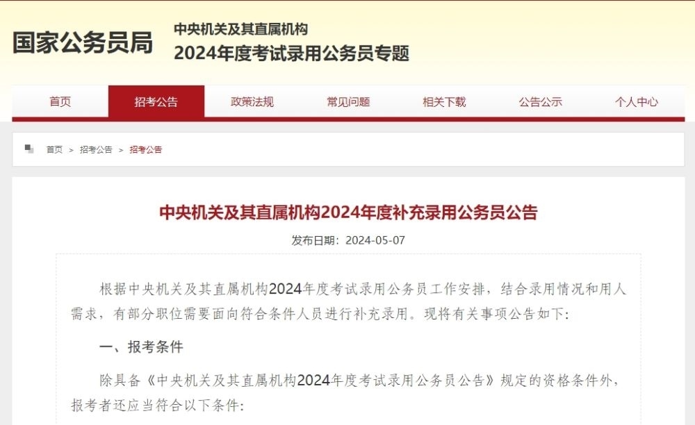 中央機(jī)關(guān)及其直屬機(jī)構(gòu)2024年度補(bǔ)充錄用公務(wù)員報(bào)名即將開始