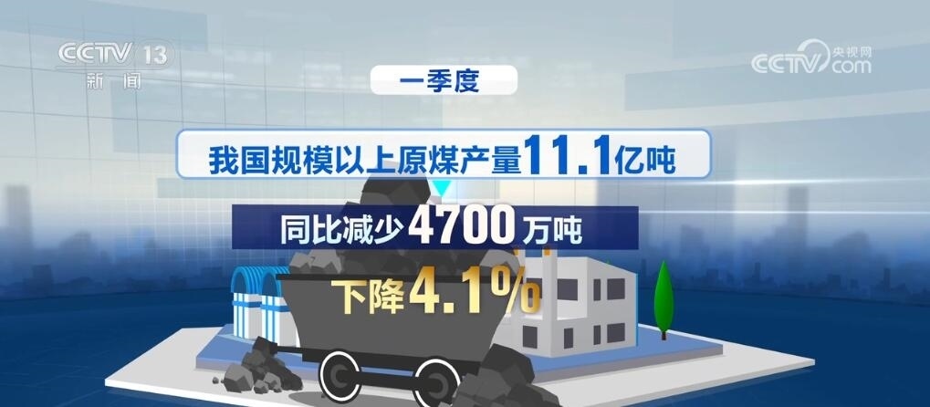 數據顯示,3月份,我國規(guī)模以上原煤產量4.0億噸,同比下降4.2%。一季度,我國規(guī)模以上原煤產量11.1億噸,同比減少4700萬噸,下降4.1%。與此同時,可再生能源發(fā)電量穩(wěn)步提升。一季度,全國可再生能源發(fā)電量達6875億千瓦時,約占全部發(fā)電量的30.7%。其中,風電光伏發(fā)電量達4253億千瓦時,同比增長25%。