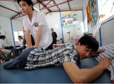 上圖為胡月2008年汶川地震后在帳篷醫(yī)院。