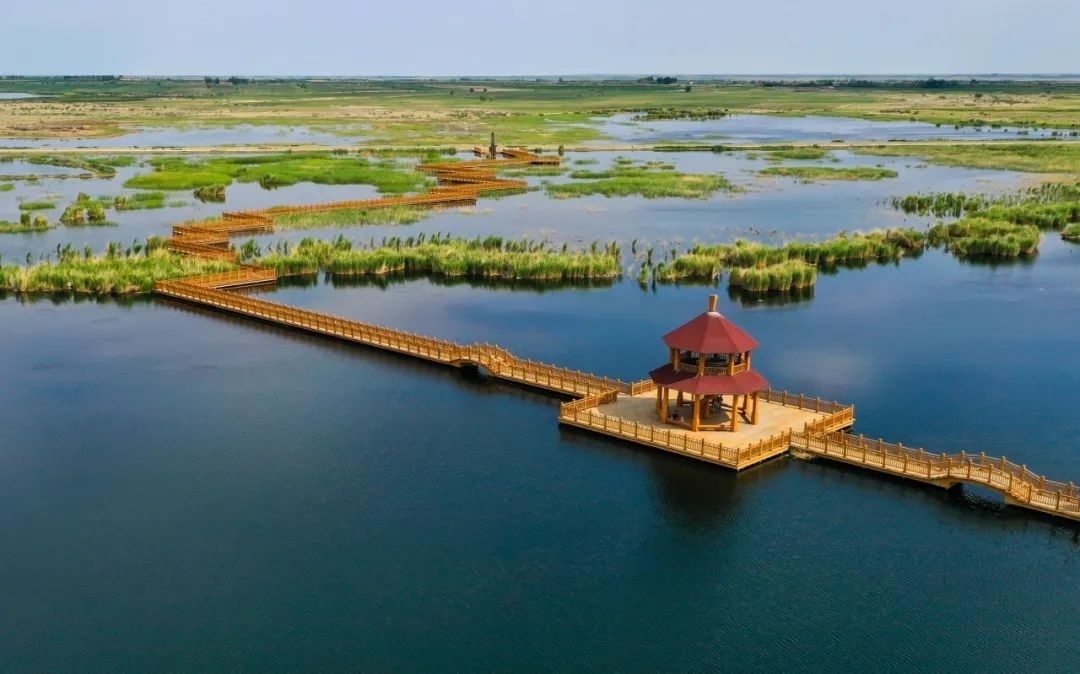 一八七團豐慶湖,雅丹地貌的自然風光獨特,湖中散布零星島嶼,盛產珍稀名貴的中華絨鰲蟹、白斑狗魚,野生鯉魚等水產品。