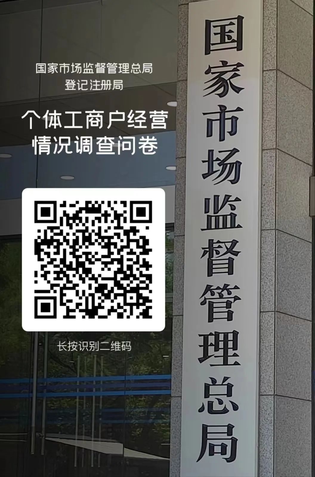 您好!為更好地了解個(gè)體工商戶生存發(fā)展?fàn)顩r,摸清個(gè)體工商戶發(fā)展中的難點(diǎn)痛點(diǎn)堵點(diǎn)問題,傾聽大家對包括市場監(jiān)管部門在內(nèi)的各部門、各方面建議,推動(dòng)在支持個(gè)體工商戶穩(wěn)信心、渡難關(guān)、謀發(fā)展上定實(shí)策、出實(shí)招,作為全國個(gè)體工商戶的“娘家人”,我們專門設(shè)計(jì)了這份調(diào)查問卷。熱切地期盼您能抽出寶貴時(shí)間填寫問卷,留下您寶貴的意見建議。