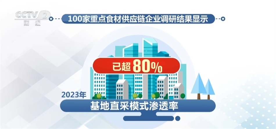 我國食材供應(yīng)鏈企業(yè)鏈條逐漸向上游延伸。100家重點食材供應(yīng)鏈企業(yè)調(diào)研結(jié)果顯示,2023年基地直采模式滲透率已超80%,有效縮短供應(yīng)鏈鏈條,降低食材采購和流通成本。
