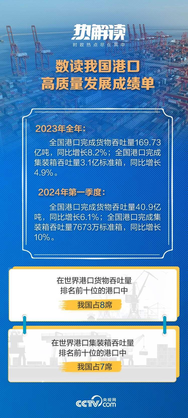 透過港口這扇窗,我們能看到“志在萬里”、向海圖強的戰(zhàn)略定力,也能深刻感受到中國經(jīng)濟的強大韌勁和旺盛活力。