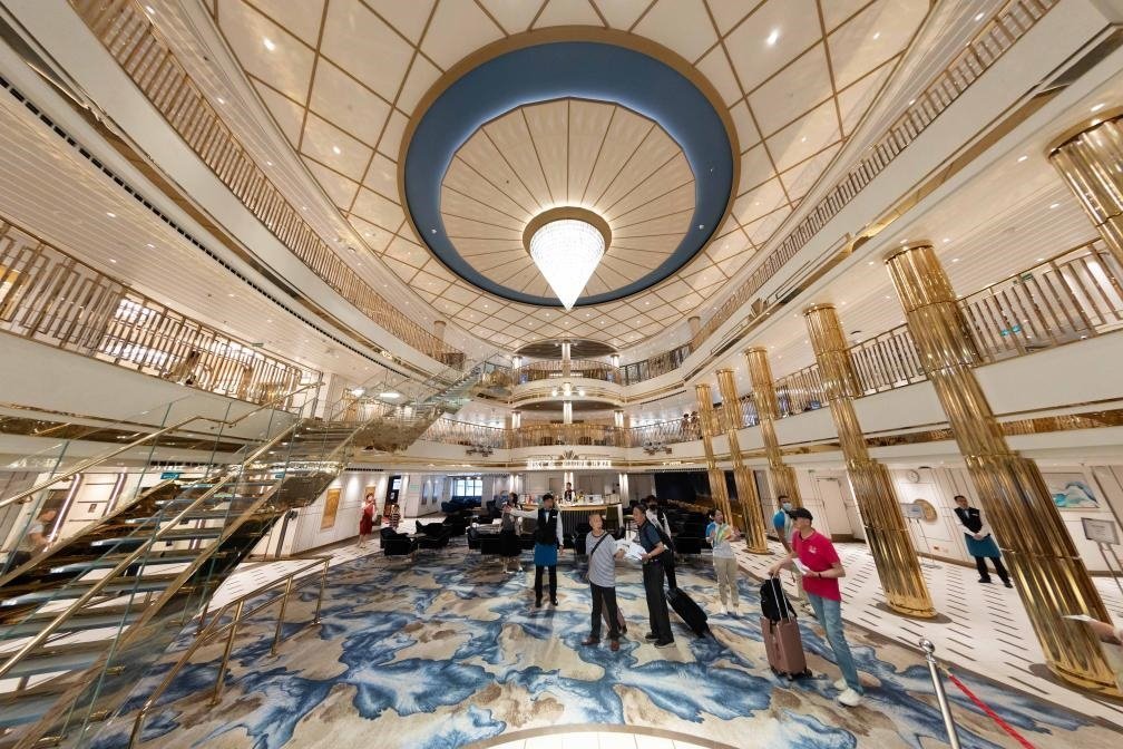 5月26日拍攝的國產(chǎn)大型郵輪“愛達(dá)·魔都號(hào)”愛達(dá)廣場(chǎng)。新華社記者 王翔 攝