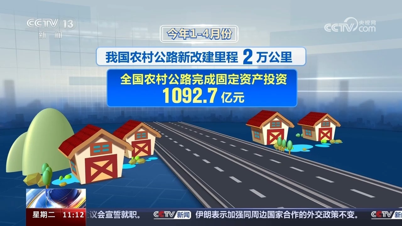 今年1—4月份,我國(guó)農(nóng)村公路新改建里程2萬(wàn)公里,全國(guó)農(nóng)村公路完成固定資產(chǎn)投資1092.7億元。