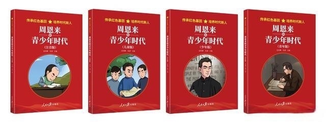 根據(jù)中共中央辦公廳印發(fā)的《關(guān)于推動黨史學習教育常態(tài)化長效化的意見》,以及教育部辦公廳印發(fā)的《關(guān)于在思政課中加強以黨史教育為重點的“四史”教育的通知》,2020年,在人民日報社副總編輯方江山的策劃和支持下,出版社約請時任中國社會科學院近代史所黨委書記金民卿和周恩來侄外孫、北京大鸞翔宇慈善基金會理事長沈清,主編“傳承紅色基因,培養(yǎng)時代新人”叢書。該叢書首批圖書包括《毛澤東的青少年時代》《周恩來的青少年時代》,書中截取了毛澤東、周恩來青少年時期的光輝片段,講述其成長、學習經(jīng)歷和積極投身革命的艱辛歷程。同時,考慮到不同年齡段學生的閱讀水平,又將圖書分為注音版、兒童版、少年版、青年版四個版本,用青少年喜聞樂見的方式,采取圖文并茂的形式,引導廣大青少年從小在心里深植紅色基因,樹立紅色理想。