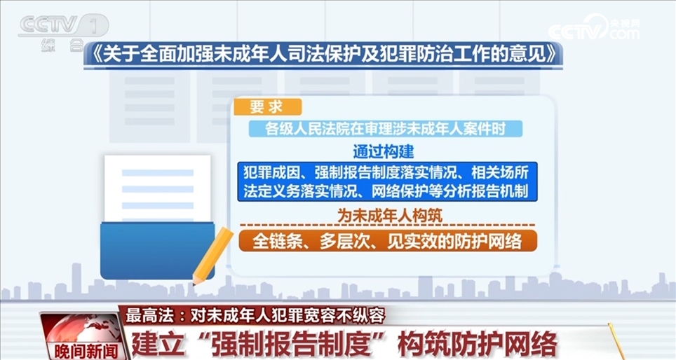 此外,《意見》還要求各級人民法院在審理涉未成年人案件時通過構(gòu)建犯罪成因、強(qiáng)制報告制度落實(shí)情況、相關(guān)場所法定義務(wù)落實(shí)情況、網(wǎng)絡(luò)保護(hù)等分析報告機(jī)制,為未成年人構(gòu)筑全鏈條、多層次、見實(shí)效的防護(hù)網(wǎng)絡(luò)。
