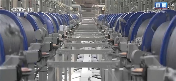 相對(duì)普通鋼簾線來說,這樣的鋼絲組成的鋼簾線強(qiáng)度更高,可以減少輪胎里面橡膠原料的使用,減輕輪胎整體的重量。這里的工作人員介紹,在鋼簾線制造過程中,工藝流程自動(dòng)化程度低一直是行業(yè)“痛點(diǎn)”?,F(xiàn)在,企業(yè)通過人工智能、數(shù)字化,實(shí)現(xiàn)了從原材料進(jìn)廠到成品出庫全流程的自動(dòng)化生產(chǎn)。