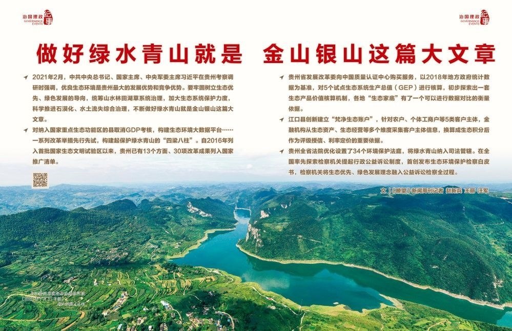 2022年初,《國務(wù)院關(guān)于支持貴州在新時代西部大開發(fā)上闖新路的意見》出臺,正式賦予貴州生態(tài)文明建設(shè)先行區(qū)的戰(zhàn)略定位,要求貴州堅持生態(tài)優(yōu)先、綠色發(fā)展,筑牢長江、珠江上游生態(tài)安全屏障,科學(xué)推進(jìn)石漠化綜合治理,構(gòu)建完善生態(tài)文明制度體系,不斷做好綠水青山就是金山銀山這篇大文章。