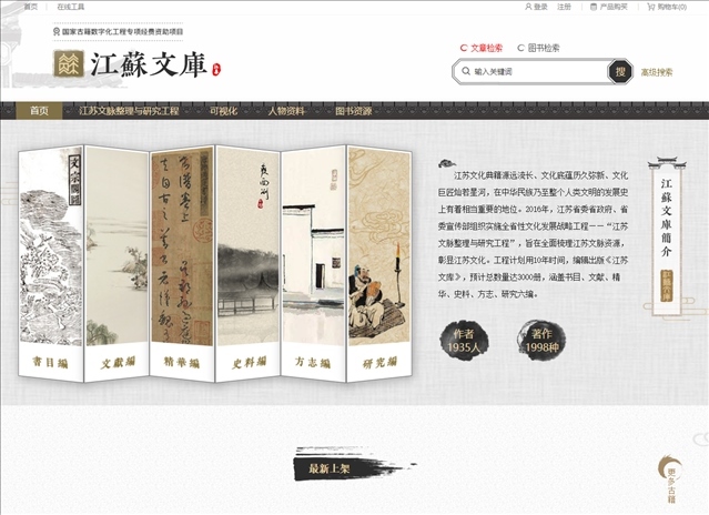 △《江蘇文庫》數據庫軟件平臺首頁截圖
