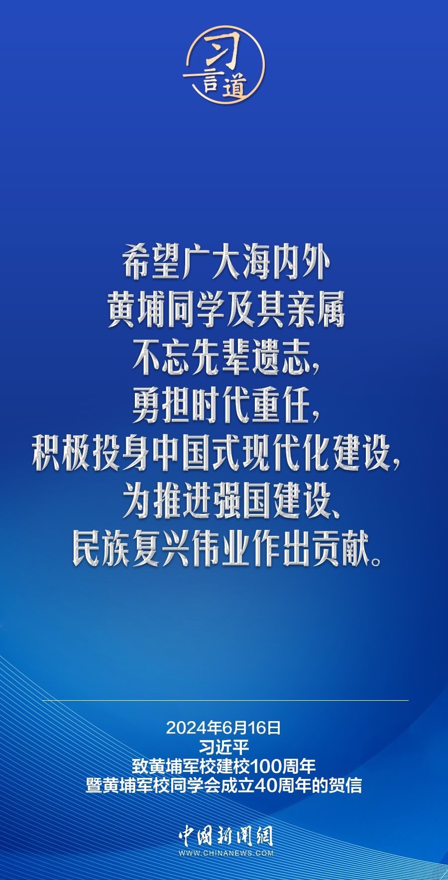 在黃埔軍校建校100周年暨黃埔軍校同學(xué)會(huì)成立40周年之際,中共中央總書(shū)記、國(guó)家主席、中央軍委主席習(xí)近平發(fā)來(lái)賀信,代表中共中央向黃埔軍校同學(xué)會(huì)表示熱烈祝賀,向廣大海內(nèi)外黃埔同學(xué)及其親屬致以誠(chéng)摯問(wèn)候。習(xí)近平指出——