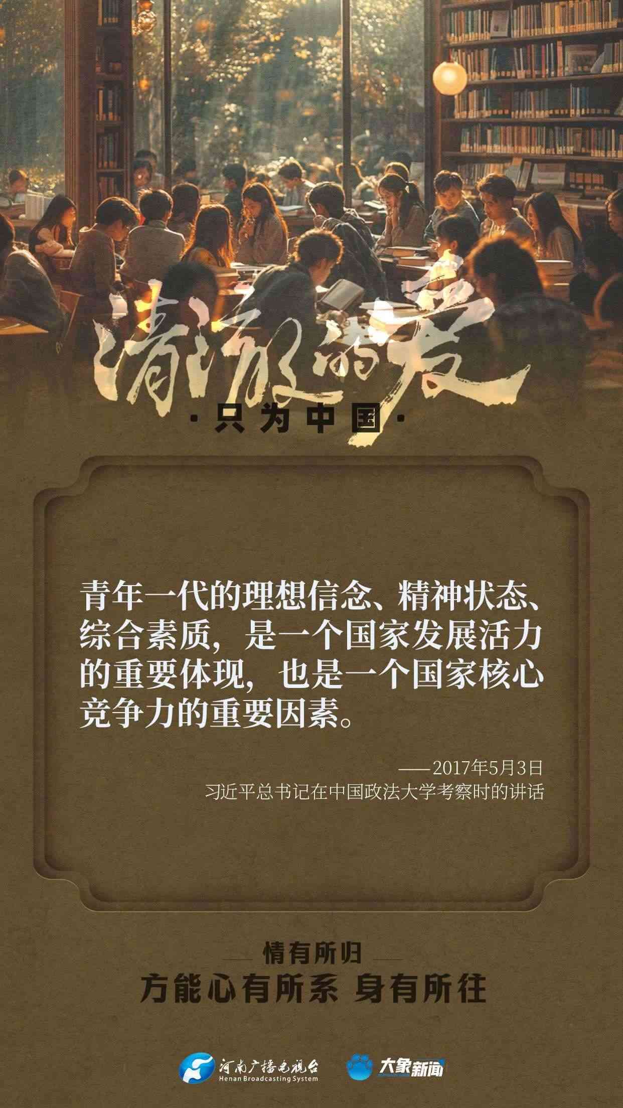習(xí)近平總書記對(duì)廣大青年寄予厚望。黨的十八大以來,他多次來到青年中間,同大家談人生、話理想,鼓勵(lì)青年人心系祖國,志存高遠(yuǎn),腳踏實(shí)地,在奮斗中創(chuàng)造精彩人生,為祖國和人民貢獻(xiàn)青春和力量。