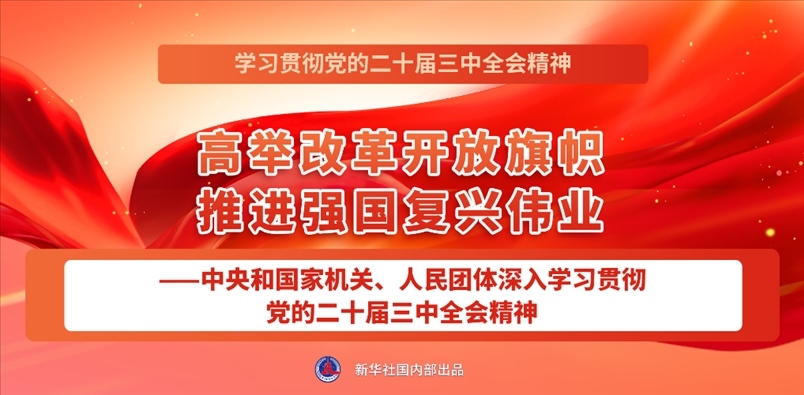 點擊標題看詳情:高舉改革開放旗幟 推進強國復興偉業(yè)——中央和國家機關、人民團體深入學習貫徹黨的二十屆三中全會精神