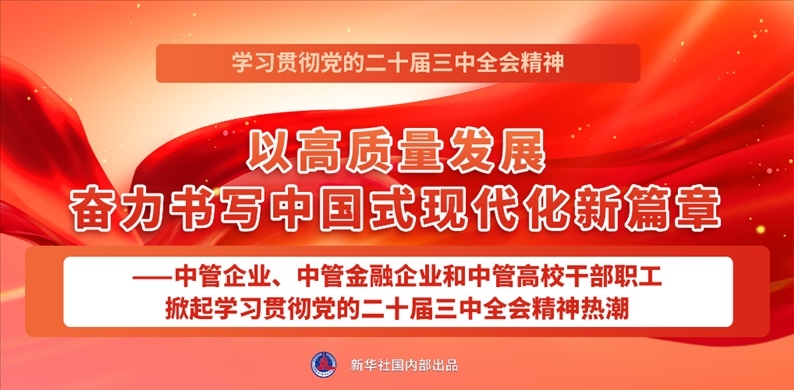點擊標題看詳情:以高質量發(fā)展奮力書寫中國式現(xiàn)代化新篇章——中管企業(yè)、中管金融企業(yè)和中管高校干部職工掀起學習貫徹黨的二十屆三中全會精神熱潮