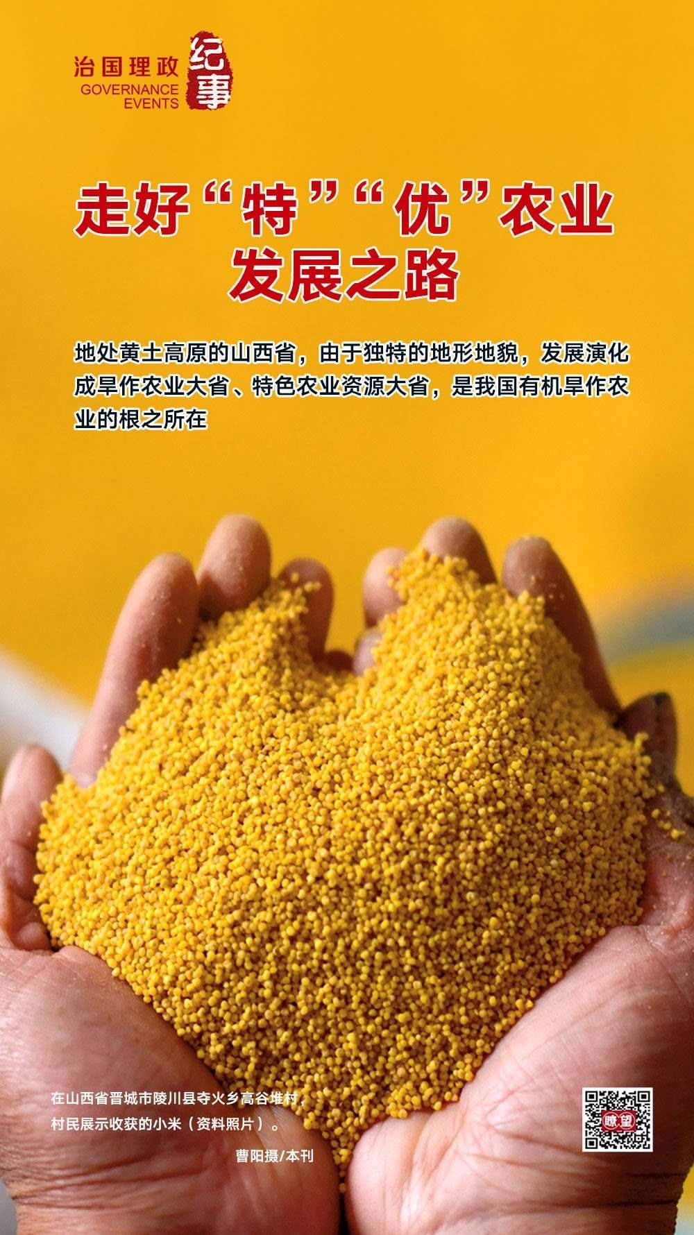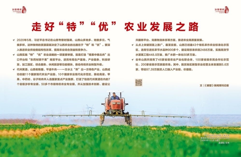 ◇2020年5月,習近平總書記在山西考察時強調(diào),山西山多地多、地貌多元、氣候多樣,這種獨特的資源稟賦決定了山西農(nóng)業(yè)的出路在于“特”和“優(yōu)”。要深入推進農(nóng)業(yè)供給側結構性改革,提高農(nóng)業(yè)綜合效益和競爭力。