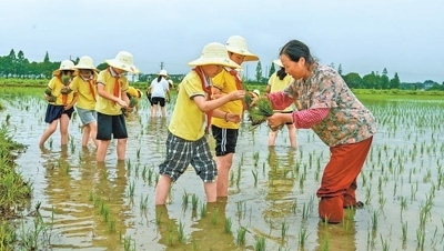 圖為學生們在體驗插秧。王棟棟攝